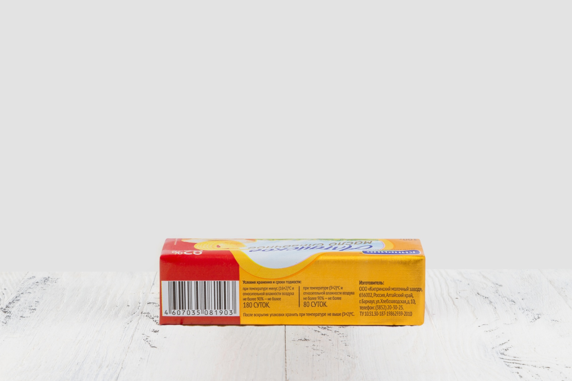 Настоящее сливочное масло высшего сорта, произведенное из свежих пастеризованных сливок в экологически чистом Алтайском крае. Благодаря высокой жирности 82% масло обладает плотной, однородной текстурой, насыщенным желтоватым оттенком и ярко выраженным сливочным вкусом. Показать больше